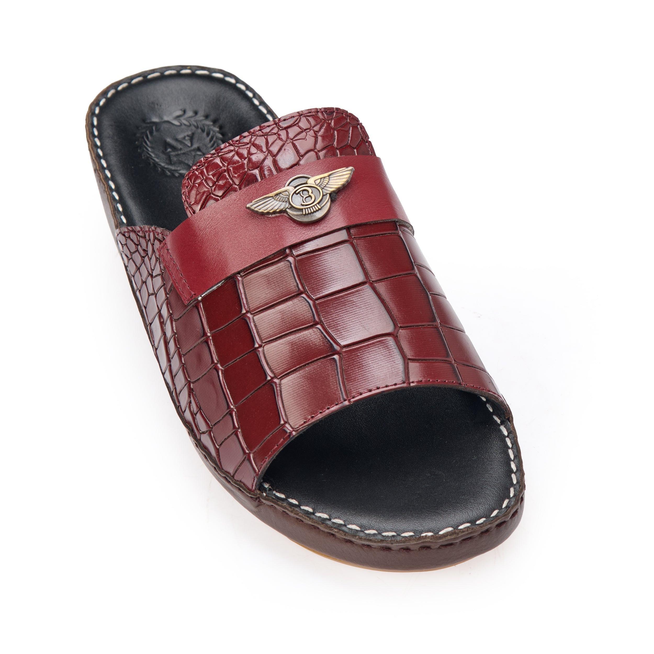 AN-7003 – Maroon Croc-Textured Luxury Arabic Sandal for Men